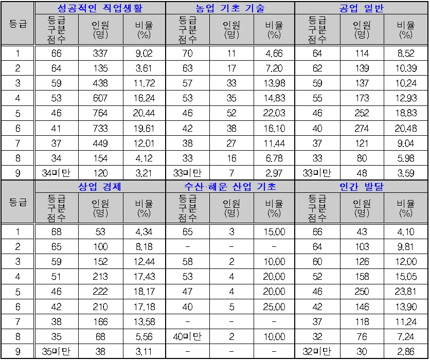 직업탐구 수능 등급컷