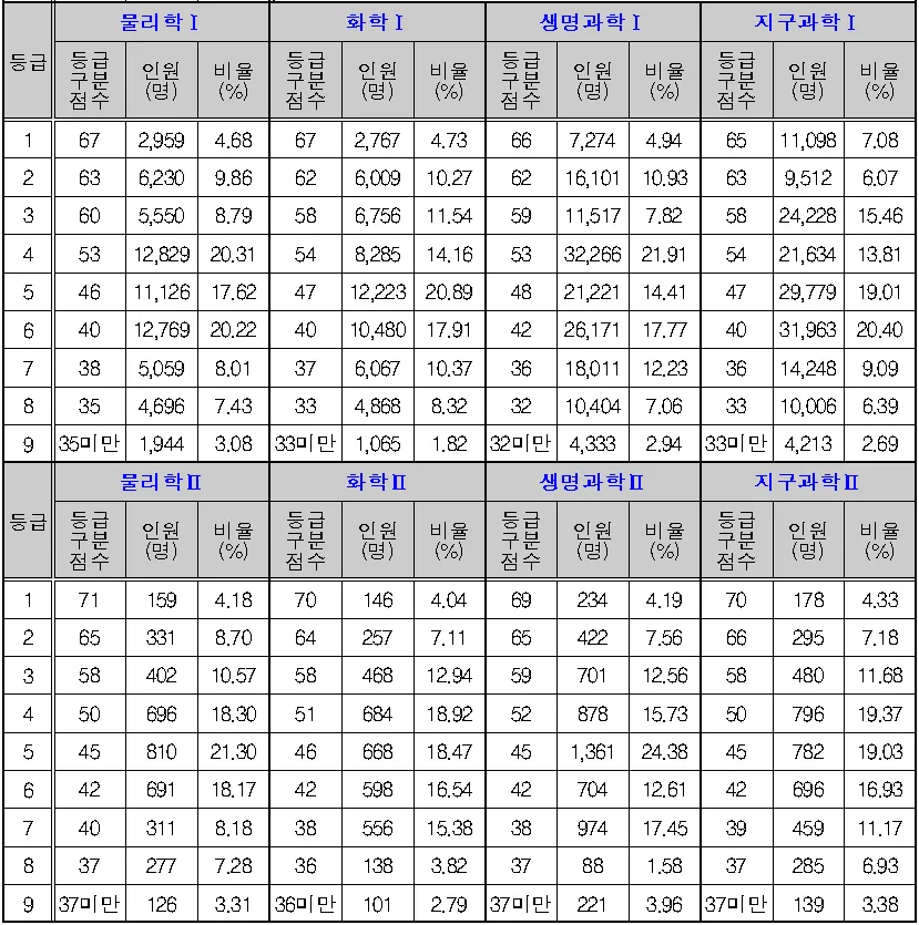 과학탐구 수능 등급컷