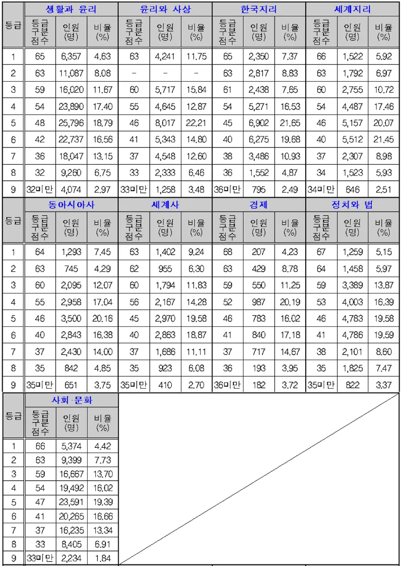 사회탐구 수능 등급컷
