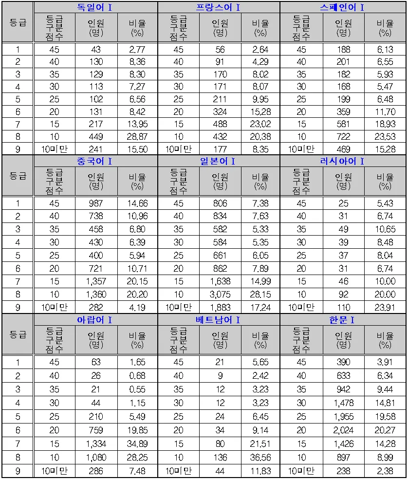 제2외국어수능 등급컷